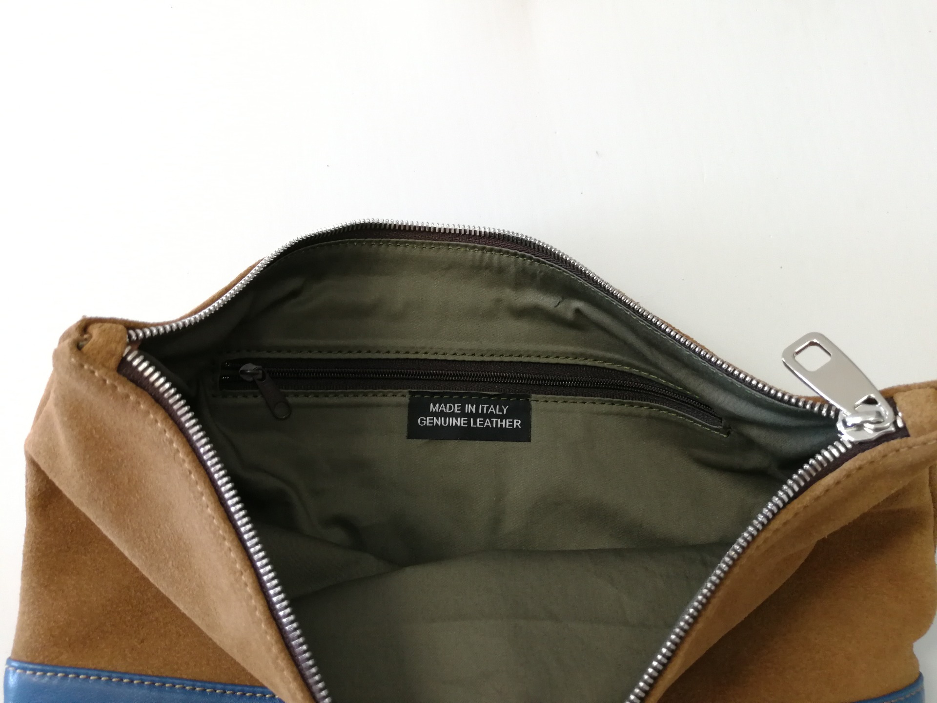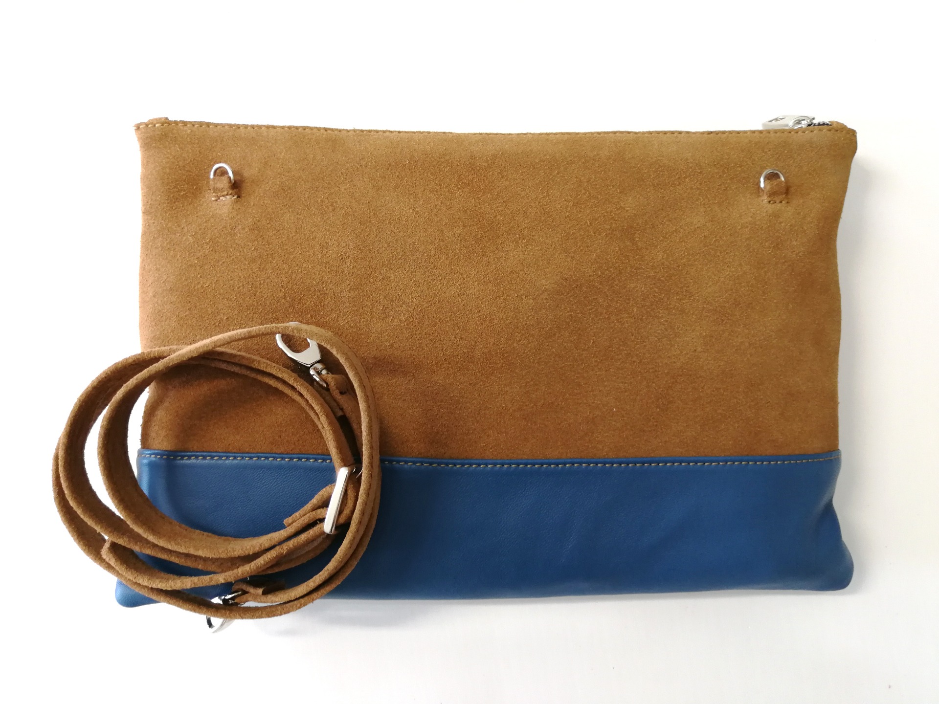 Scamosciato color marrone + pelle color blu